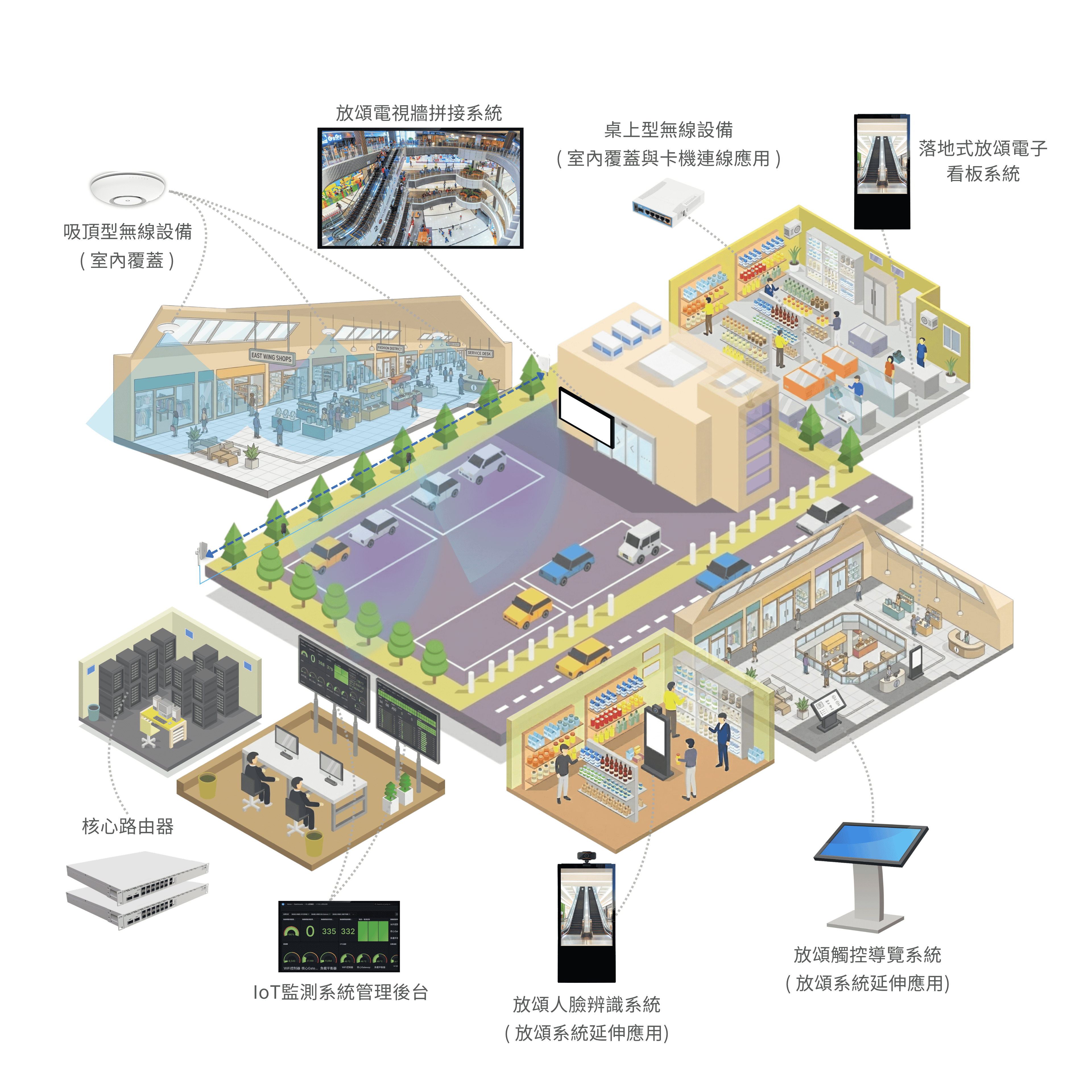 百貨網路建置,商場WiFi,放頌數位看板,百貨數位看板系統,商場導覽系統,人臉辨識商場,WiFi行銷,MikroTik商場,卡機連線,智慧商場系統