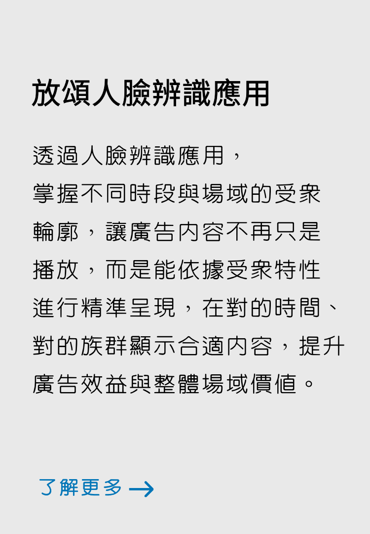 透過人臉辨識技術分析觀看者的年齡層、性別與時段分布,掌握不同區域與時間的受眾特性,讓內容規劃有依據,而不再只是經驗判斷