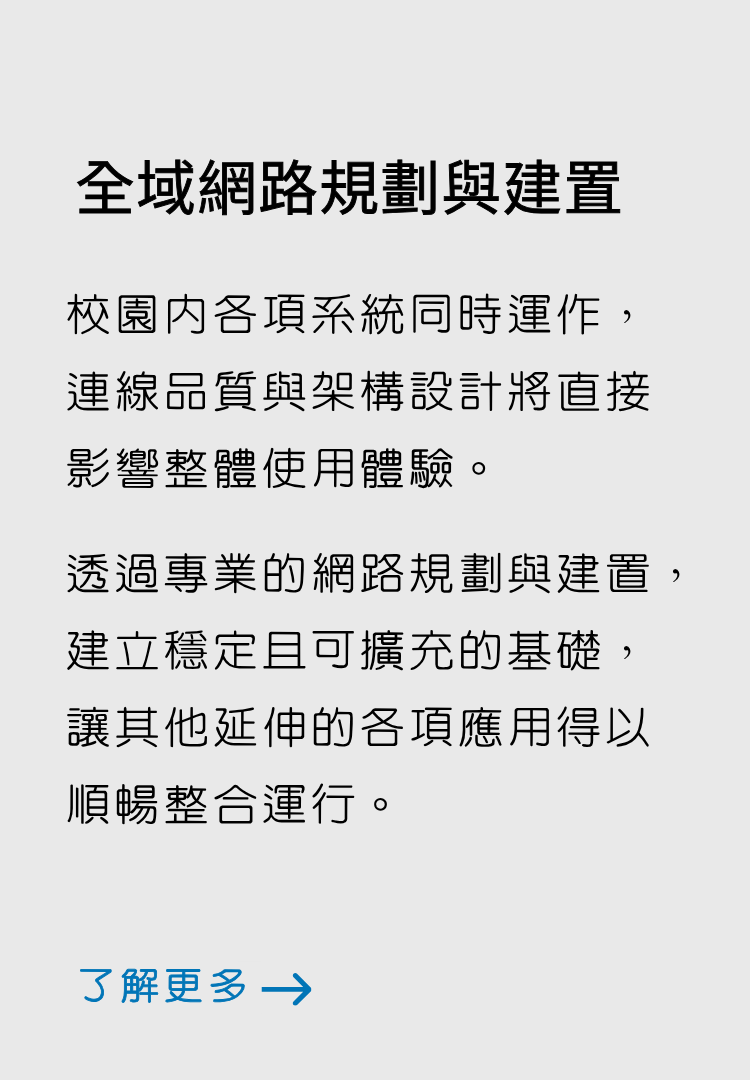 不同角色在校園中的使用方式不同,從教師教學、行政作業到學生上網需求,皆在規劃初期一併納入,讓網路不是「能連」,而是符合日常運作。