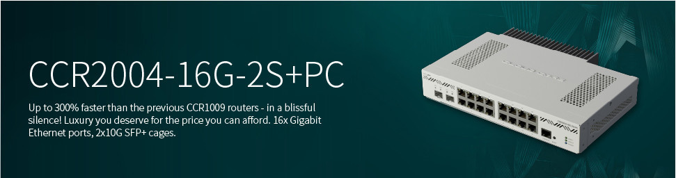 MikroTik CCR2004-16G-2S+PC 是MikroTik 最新推出的工業級雲端運算路由器,其採用4核心高效能路由器16個Gigabit Ethernet Ports,和2個SFP+光纖埠。