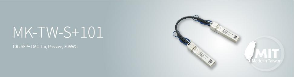 MK-TW-S+10x 為 10Gbps SFP+ Direct Attach Copper(DAC)直連銅纜,採用 Passive Twinax 線材設計,長度 1 公尺,也有 2 公尺與 3 公尺,共三種規格,適合用於短距離高速網路設備連接。